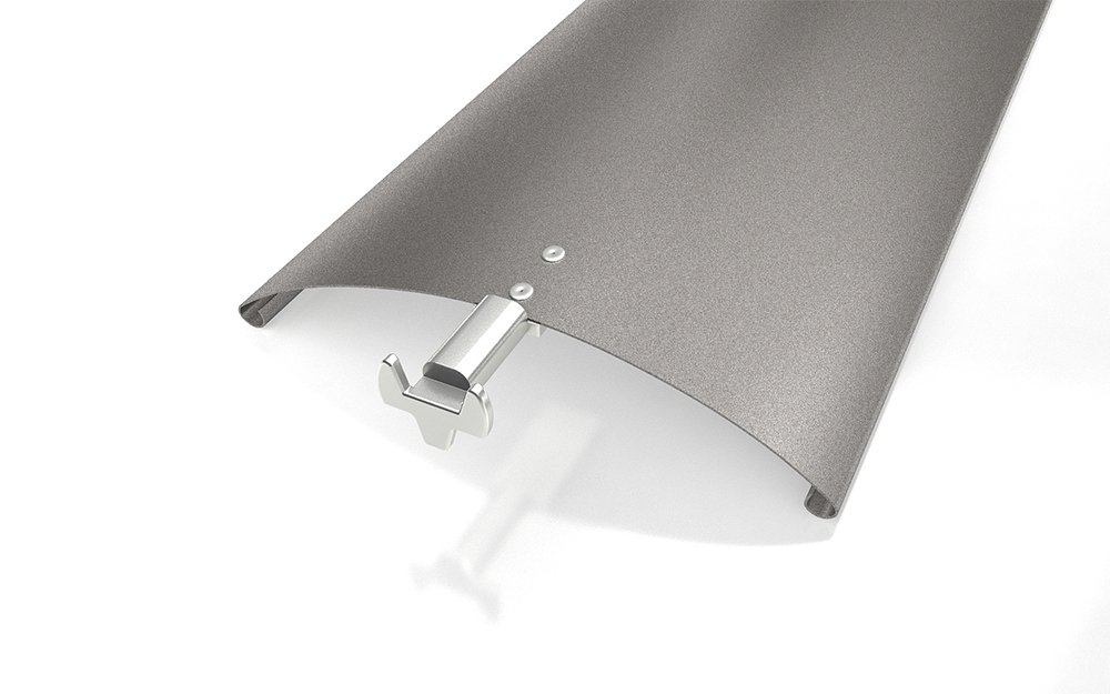 Hliníkový krycí plech zakrýva horný nosič aj zväzok lamiel a pri vytiahnutí vonkajšej žalúzie ich chráni pred poveternostnými vplyvmi. Farbu je možné zladiť s farbou žalúzií alebo fasády. Toto riešenie je perfektné pre dodatočnú montáž.